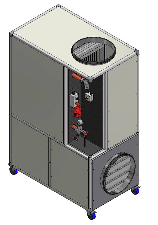 Unser 70 kW Airhandler ist auch mit Regelung und Verrohrung erhältlich.